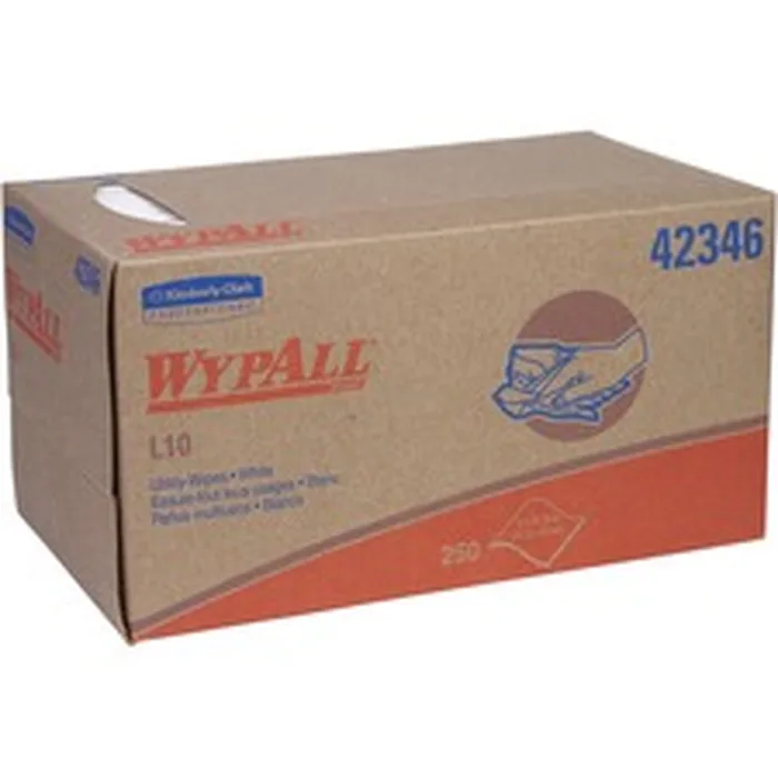 Kimberly KCC 42346 Wypall L10 Utility Towels Wipe 9 Width X 10.25 Length 250 Box 24 Carton White