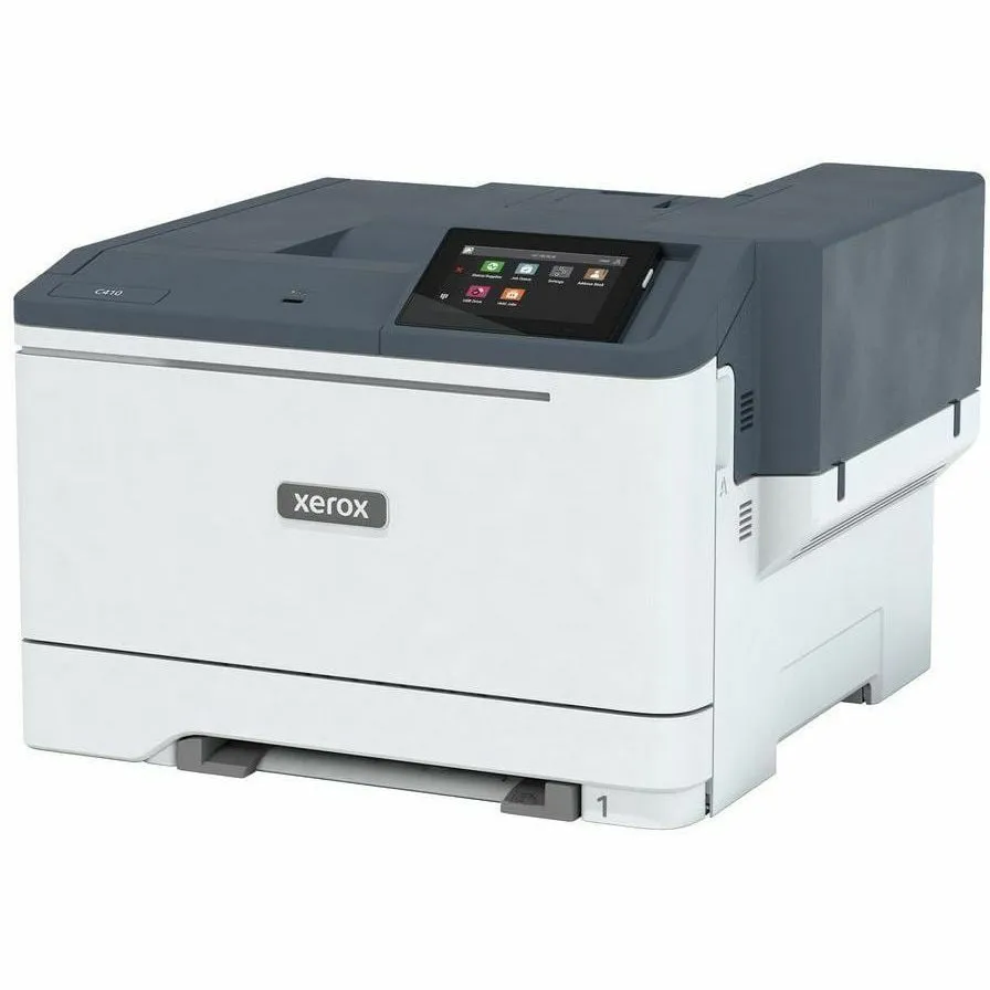 The Xerox C410 Color Laser Printer offers fast printing speeds of up to 42 pages per minute (ppm) with duplex printing capabilities. This TAA Compliant printer is ideal for small to medium-sized offices needing high-quality color documents with consistent performance.