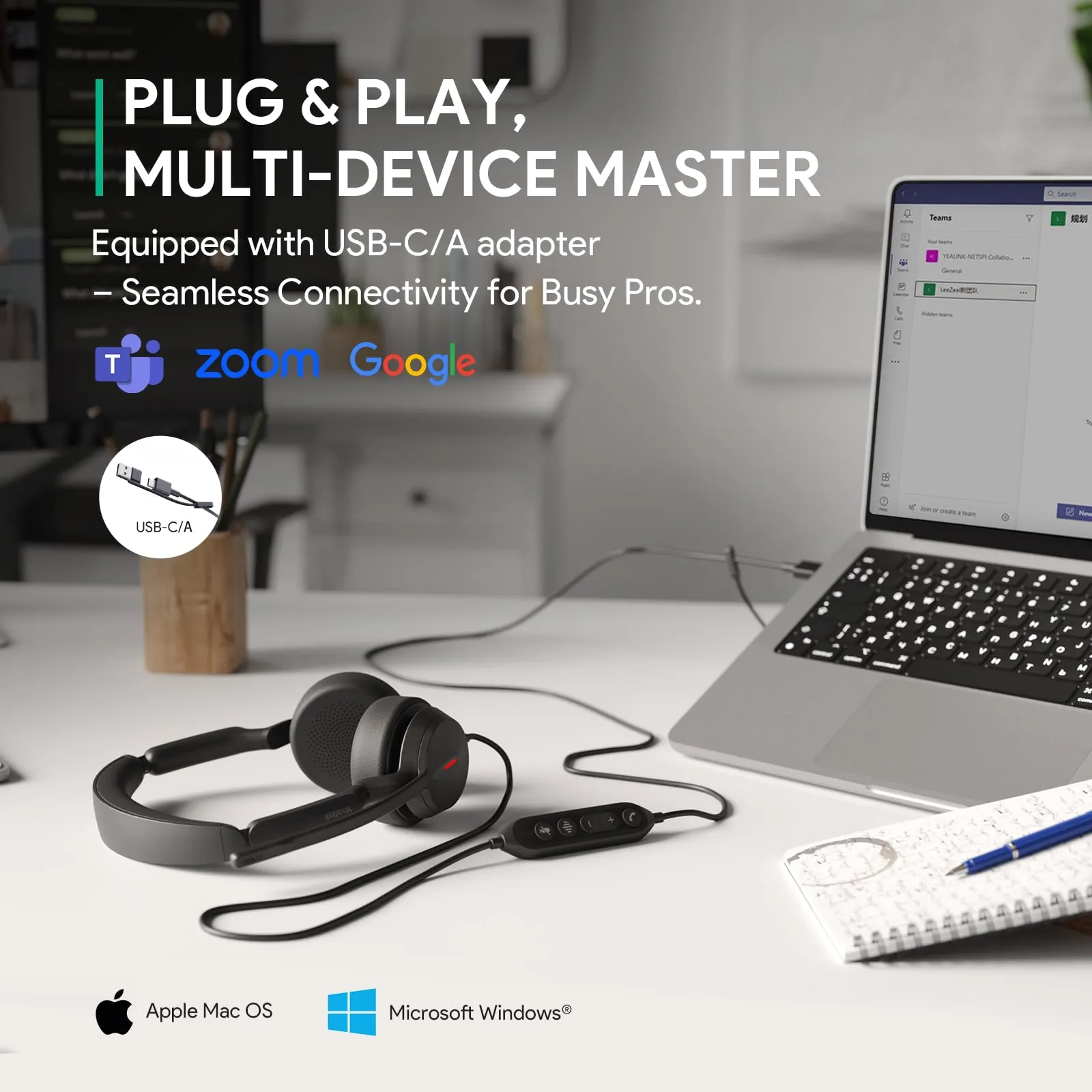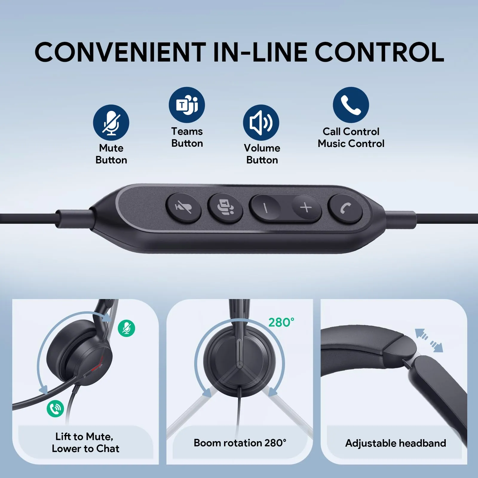 Its lightweight design and adjustable headband ensure long-lasting comfort, making it suitable for extended wear. The headset is optimized for Microsoft Teams, providing easy access to call controls and features directly at your fingertips.