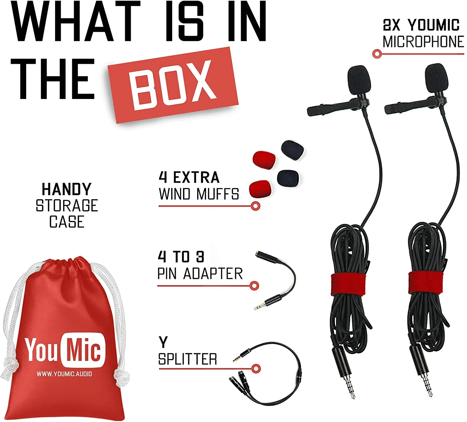 Heyybit X001ULFV99 Youmic 2 Dual Mini Lavalier Lapel Mics With Clip For Phone Iphone Microphone For Ios Android Pc Laptop Video Vlogging