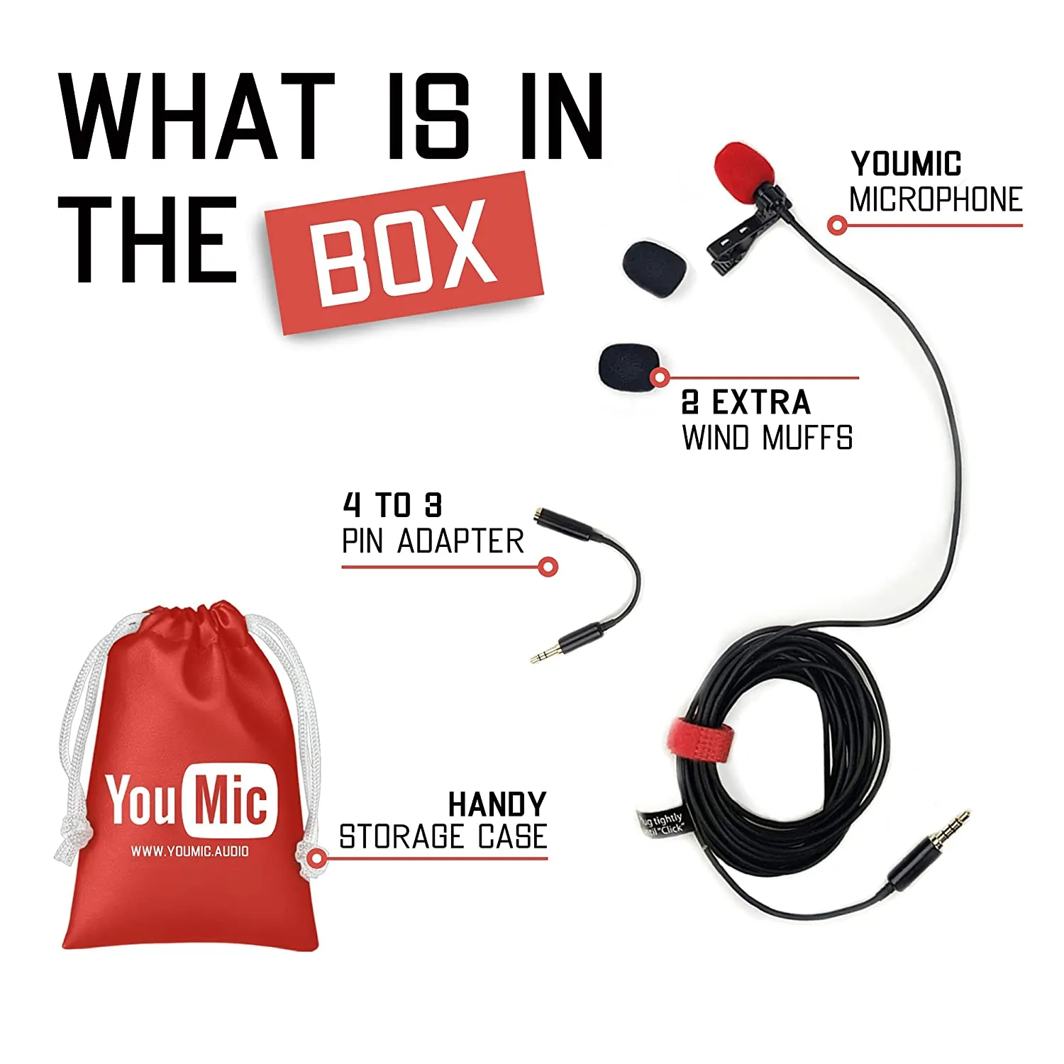 - Two high-quality dual mini lavalier lapel microphones