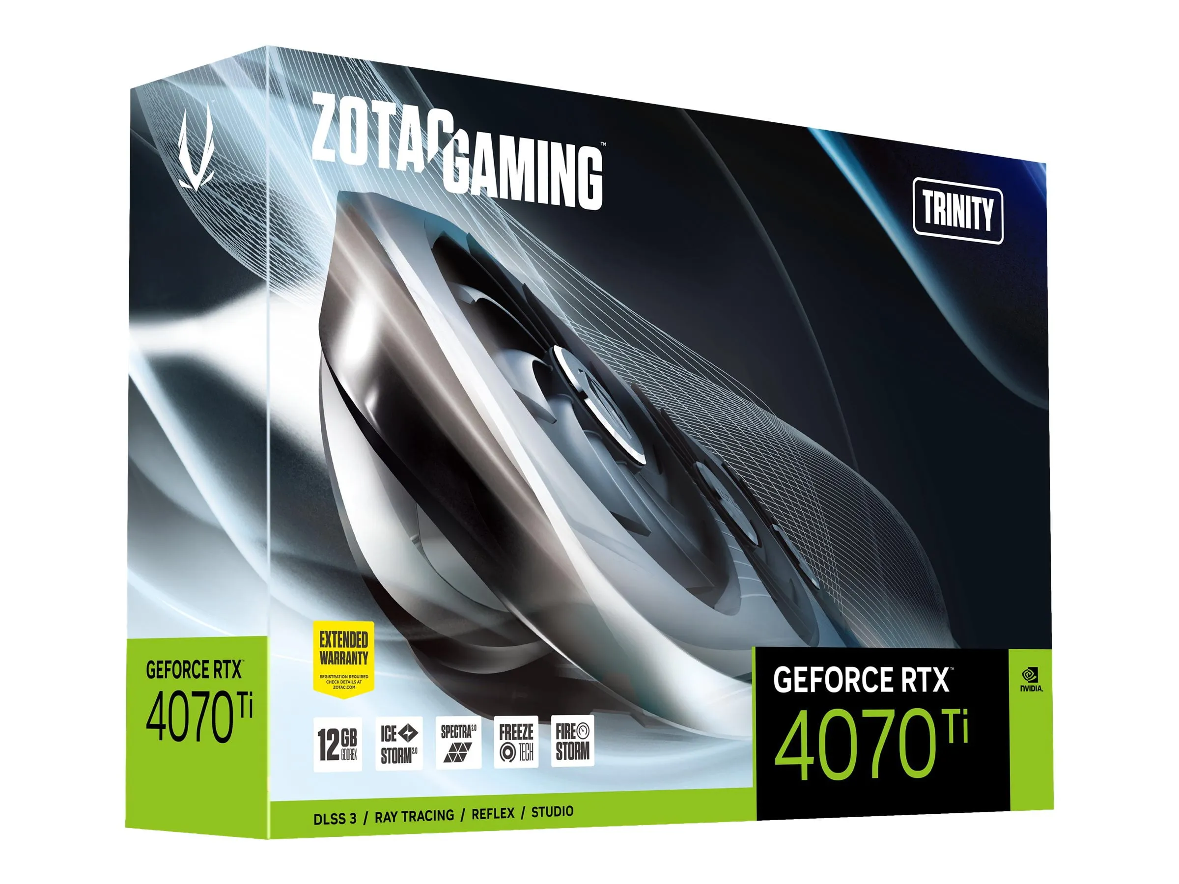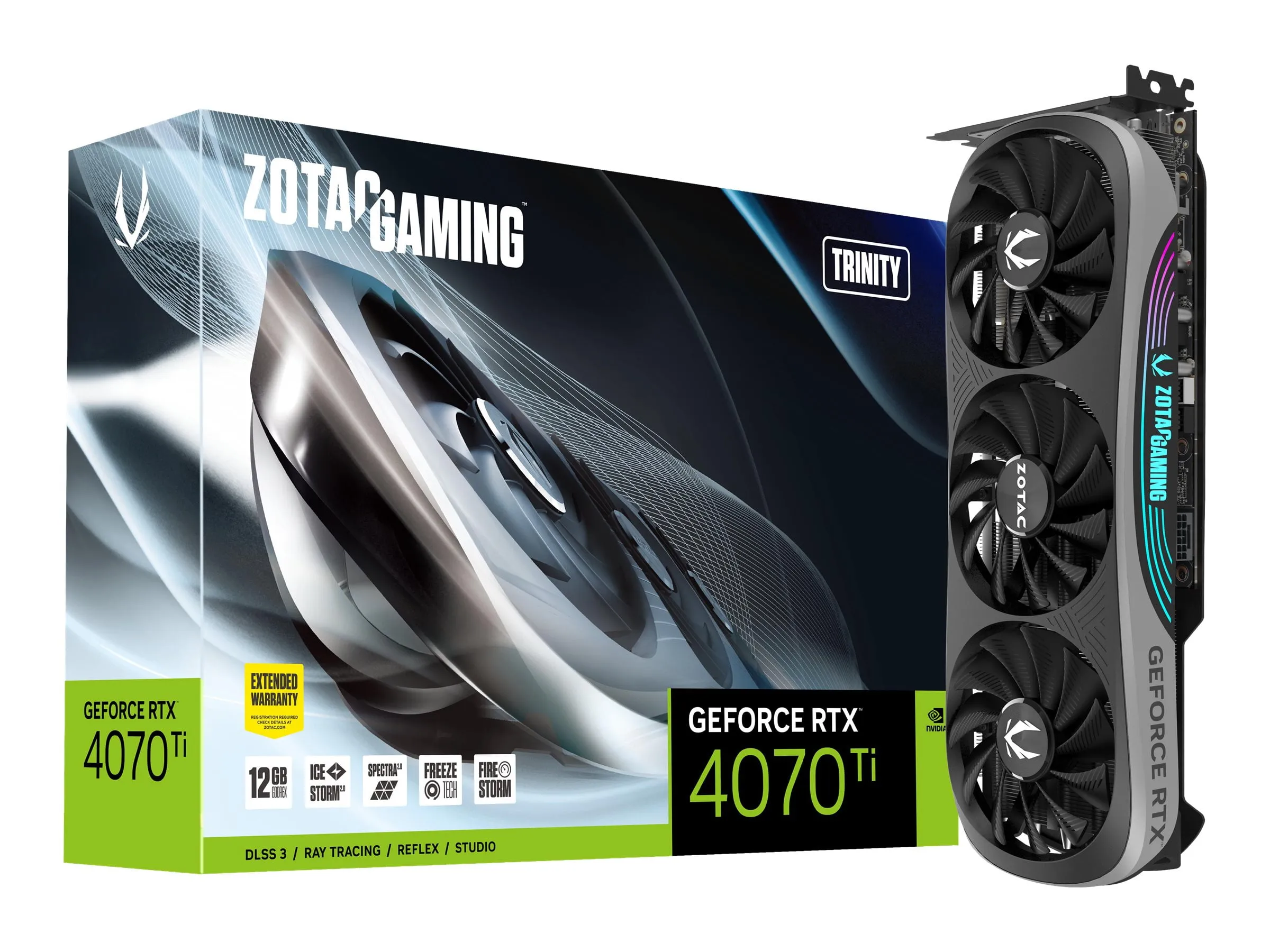 The ZOTAC GeForce RTX 4070 Ti Trinity graphics card is designed for gamers and creators who demand high performance and stunning visuals. With 12GB of GDDR6X memory and advanced ray tracing capabilities, this GPU provides an unparalleled gaming experience. Whether you're playing the latest AAA titles or working on intensive creative projects, the RTX 4070 Ti delivers exceptional speed and efficiency.